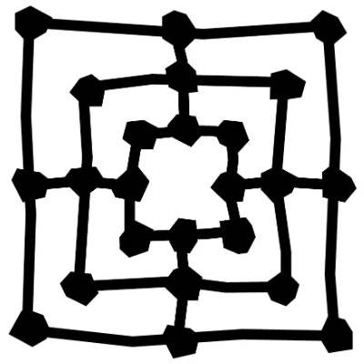 The two players take turns in placing their 2x9 pieces on each of the board’s points (intersections, where a horizontal and a vertical line meet). Once all nine pieces (or ‘men’) have been placed on the board, the players take turns in moving their men to an available adjacentpoint. If a player manages to place three of their men in a line, either horizontally or vertically, then they have made a ‘mill’ and may remove one of their opponent’s men. This applies to every mill that is made.